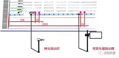 ●在距离停车线200m的可变车道上方有可变车道指示牌,直行指示灯或左转指示灯可自行切换。